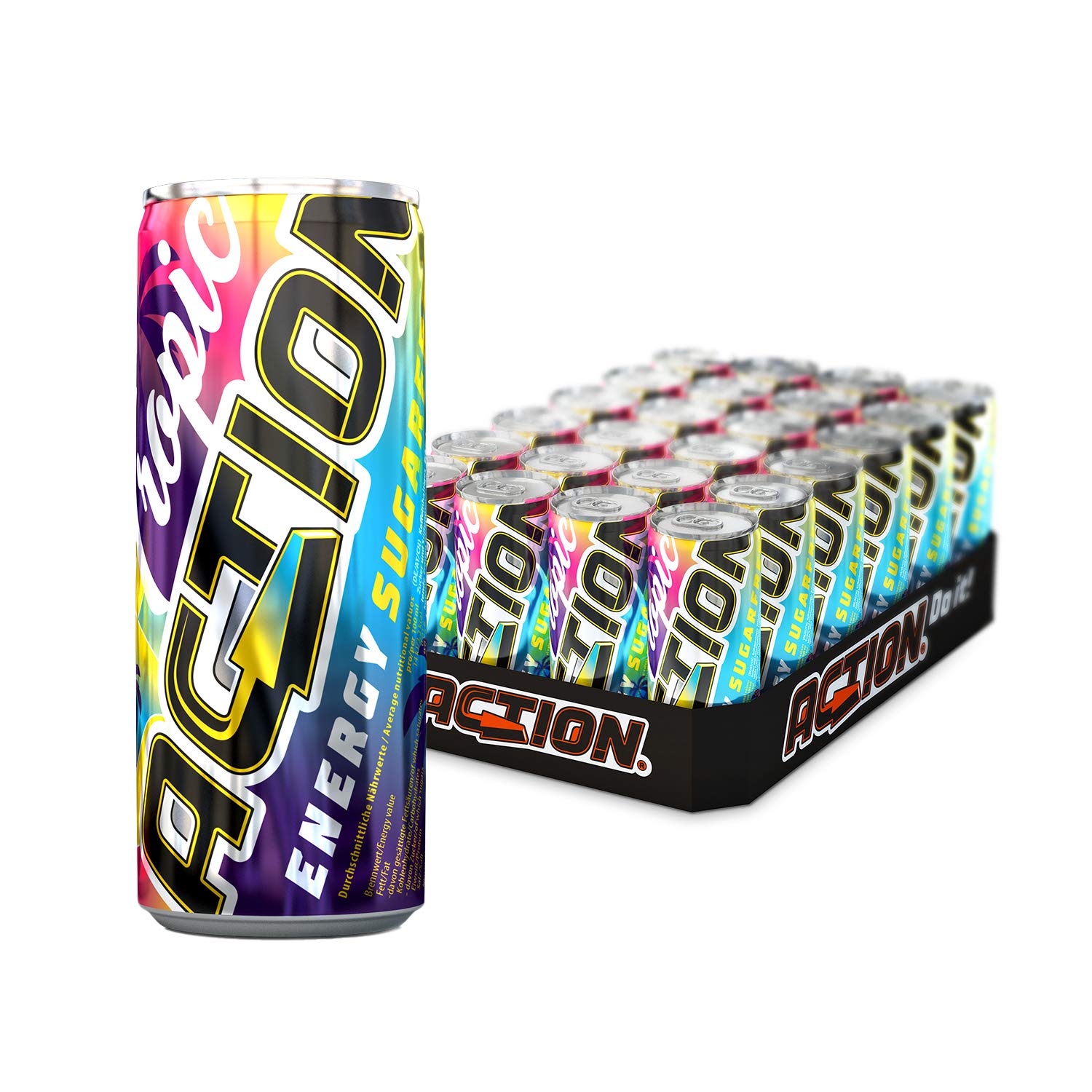 Und schon sind wir bei unserer Nummer 3: ACTION Energy Tropic ist weder Bestseller noch Qualitätsspitzenreiter. Allerdings konnten wir ein paar interessante Fakten zusammentragen, die Sie begeistern werden. Wir halten es für wichtig, auch Produkte wie ACTION Energy Tropic in unserem Projekt aufzuführen, um Sie auf den bestmöglichen Kauf vorzubereiten. Sie erhalten 24 Dosen mit je 250 ml des zuckerfreien tropischen Energiedrinks in vielen verschiedenen Geschmacksrichtungen. Er enthält 32 mg Koffein auf 100 ml. 220 Kundenrezensionen kommen hier mit einer bunten Mischung aus positiven und negativen Kommentaren zurück. Das Feedback sowie unsere Durchschnittsanalyse von 4,4 von 5 Sternen sprechen nur zum Teil für unseren Kandidaten auf Platz 3. Ob eine Empfehlung wirklich angebracht ist, wissen nur Kenner. Wir reden bei diesem Produkt zwar nicht von einem absoluten Schnäppchen, aber teuer ist das trotzdem nicht. Hier befinden wir uns preislich in einem gesunden Mittelwert. ACTION Energy Tropic ist kein schlechtes Produkt, keine Frage. Dennoch nehmen wir Abstand von einer Empfehlung, da uns zu viele Daten einfach nicht überzeugt haben. Der eine oder andere vermag seine eigene Analyse im Bereich „Action Energy Drink“ machen und ist daher anderer Meinung. Deshalb stellen wir den Link auch hier unter dem Text zur Verfügung.